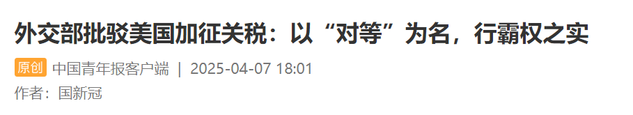 外交部批驳美国加征关税:以“对等”为名,行霸权之实
