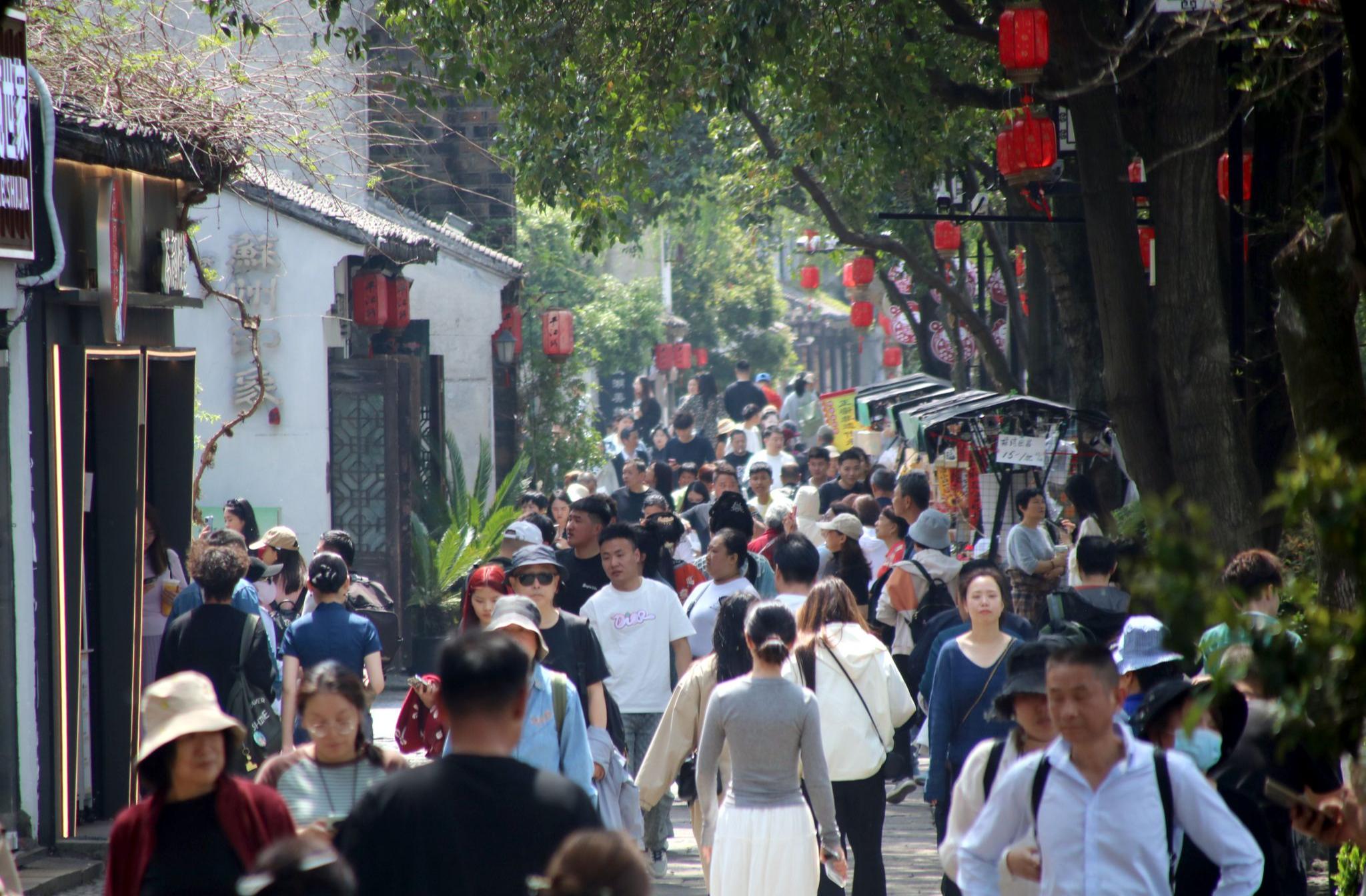 苏州平江路古街迎节后“错峰游”