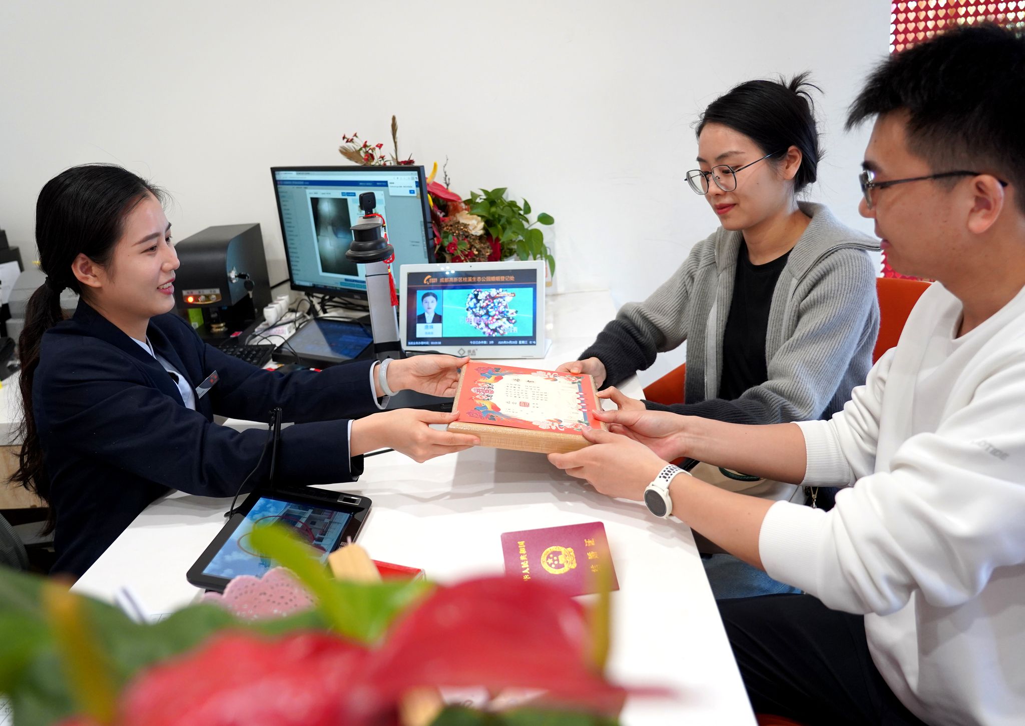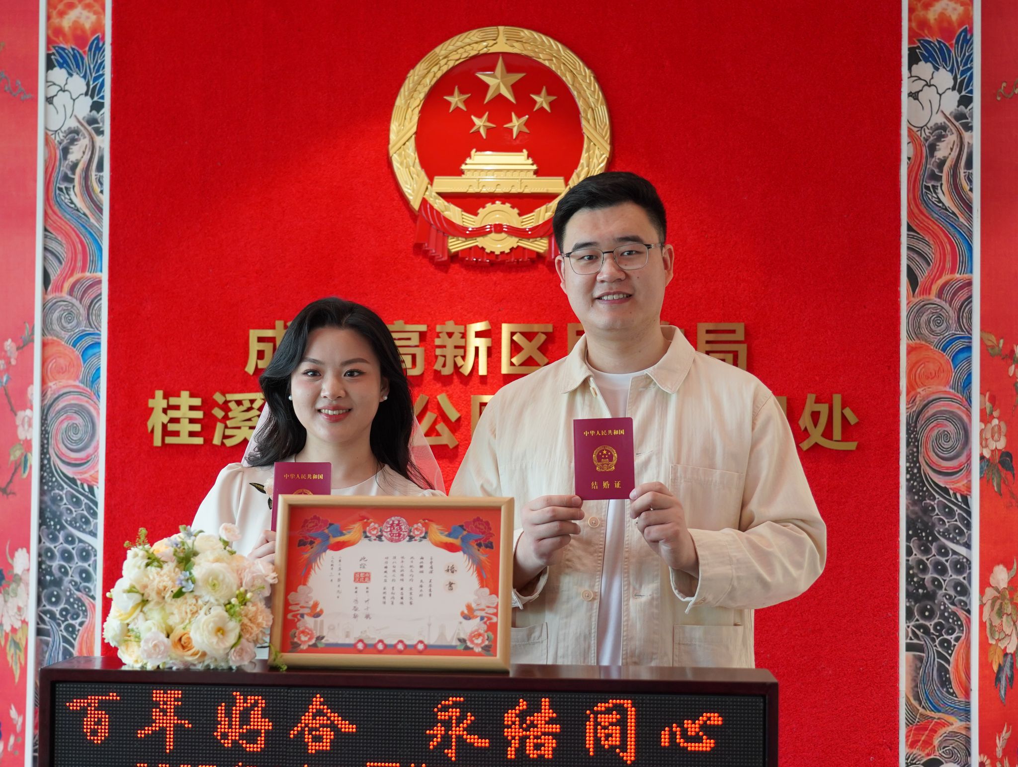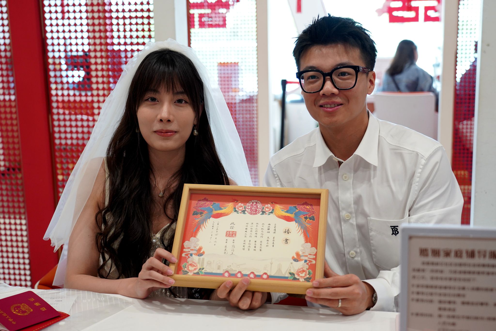 成都新人领证获赠定制婚书