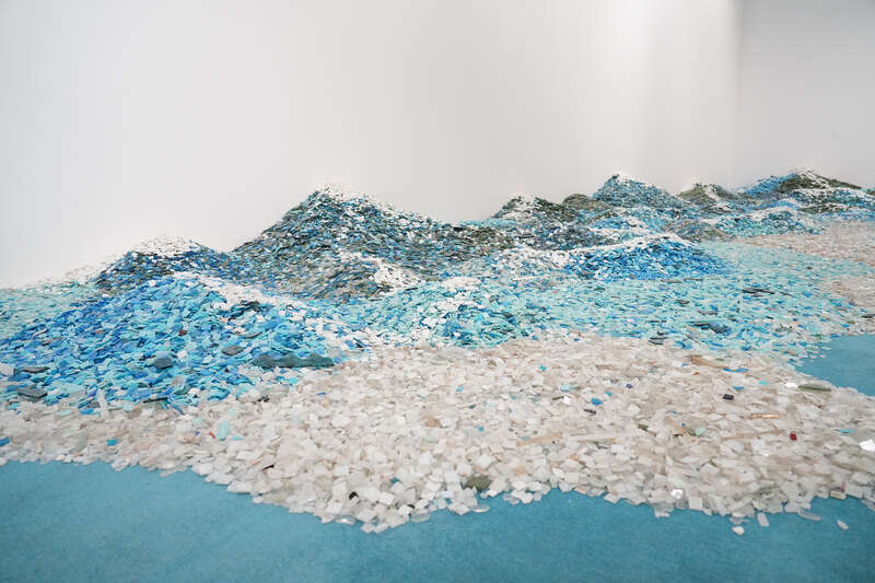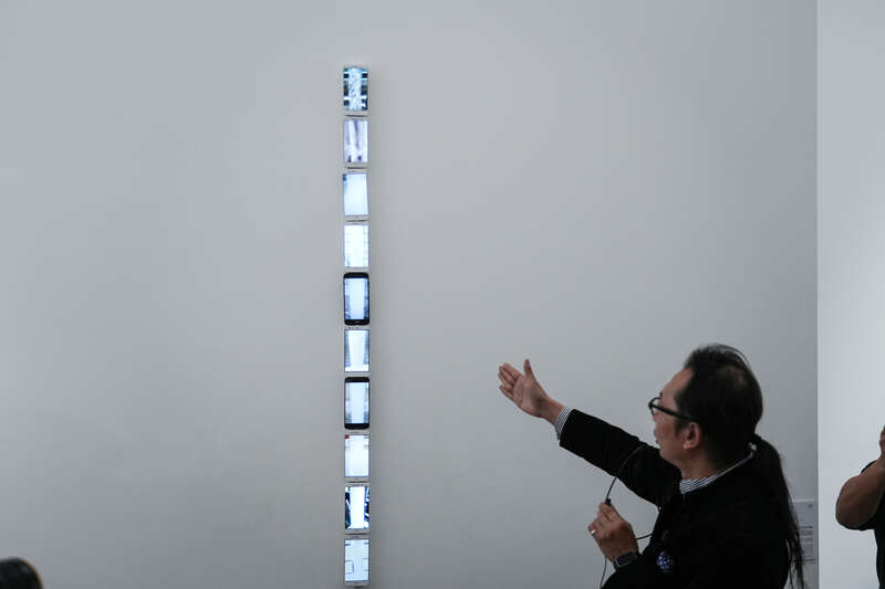 展览中一件名为《瀑布》的作品受到大量关注。李景湖曾住在东莞的出租屋里,日复一日地听到流水声。制作这件作品时,他收集东莞人的旧手机,在他们居住的房子拍摄他们水龙头放出的水流,在展厅竖着串起来,同时连续播放流水视频。武一婷提示现场观众,这件作品“能看到的不仅是倾泻的流水的影像,更能看到产业工人流动的青春和生命”。