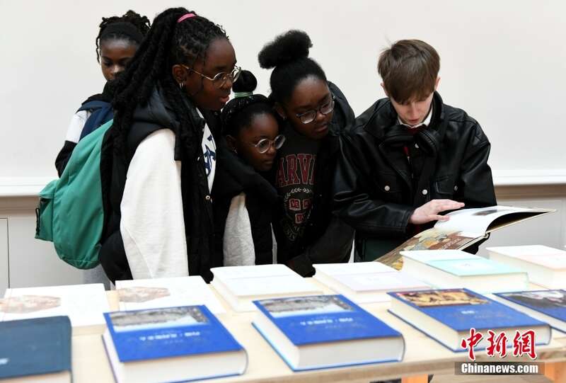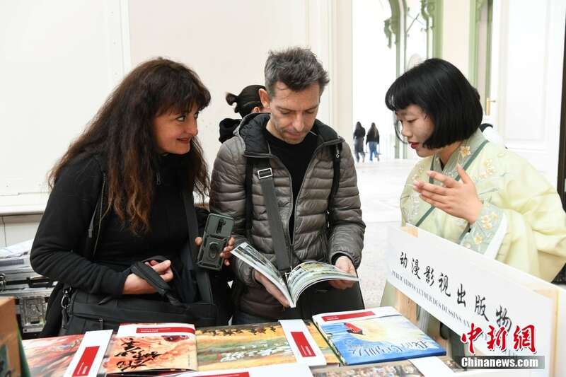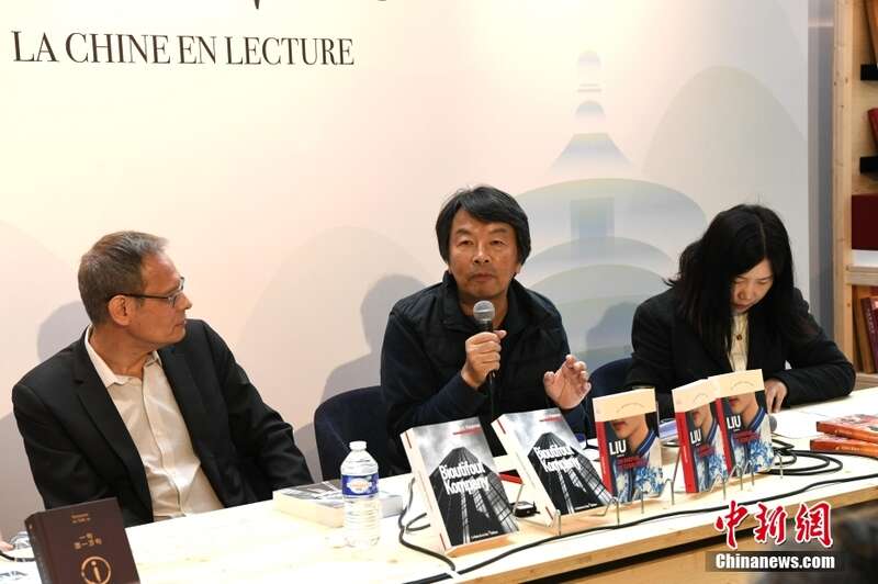 在图书节现场推出的中国图书展台受到法国当地读者的关注。
