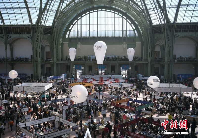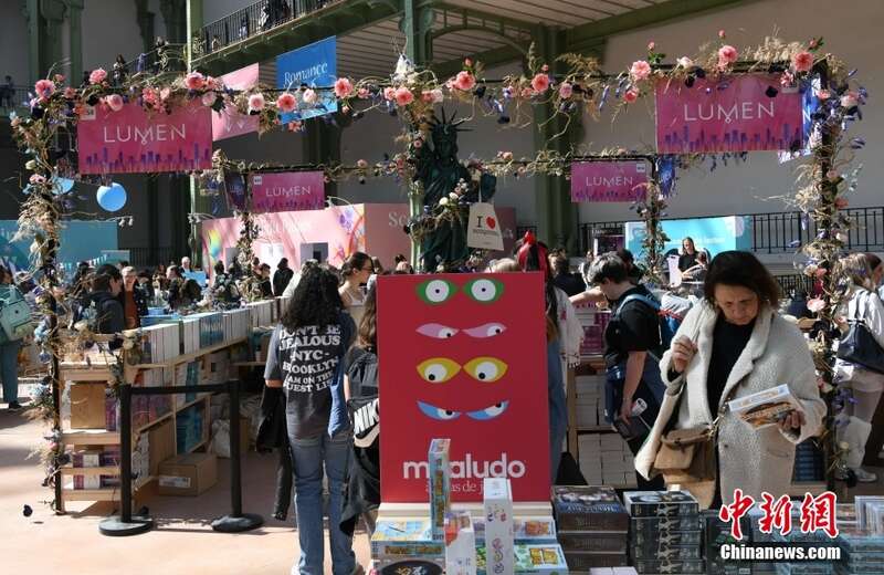 当地时间4月11日,2025年巴黎图书节在巴黎大皇宫揭幕。图为巴黎大皇宫的图书节现场。