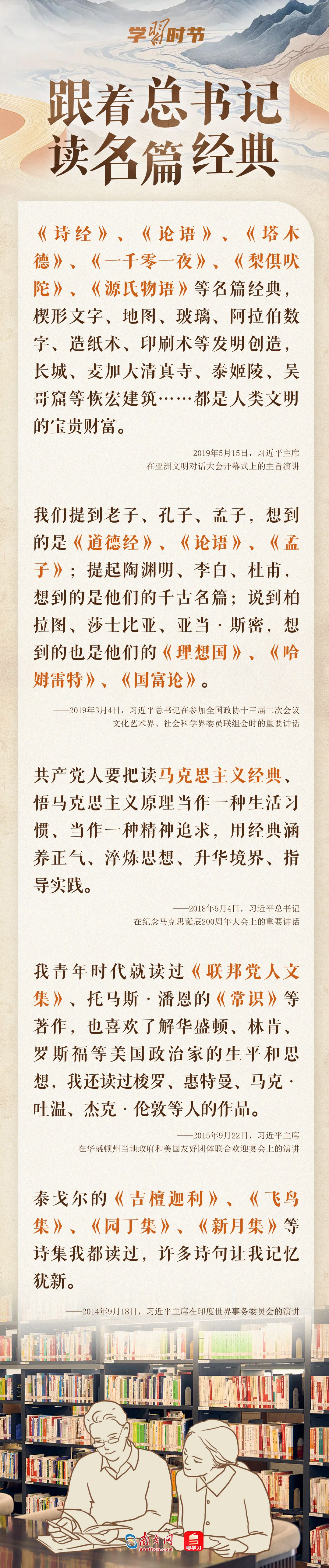 4月23日是第30个世界读书日。我们为何要读书?应如何读书?读些什么书?让我们跟随总书记的“读书指南”,一起“爱读书、读好书、善读书”。