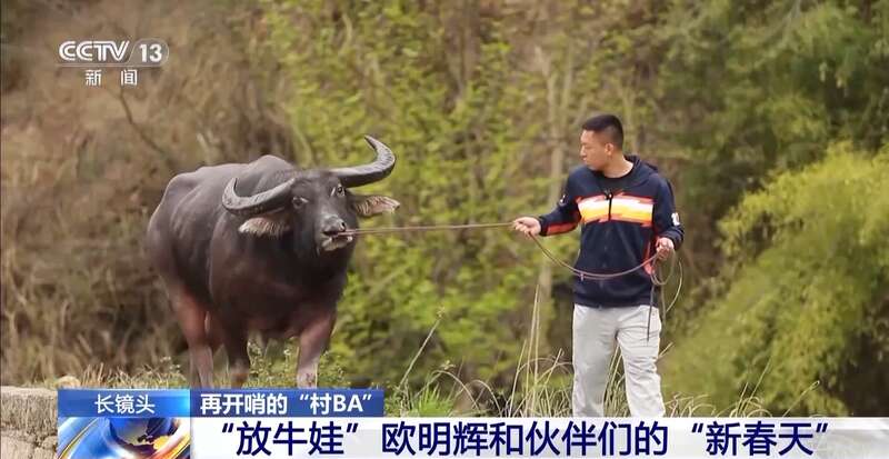 来自台江县的欧明辉曾多次获得过“村BA”赛事的最佳球员和得分王等荣誉。这位因打球的风格像牛一样有冲劲和犟劲而得名“欧牛王”的球员,生活中也是名副其实的“牛王”,因为养牛才是他的主业。