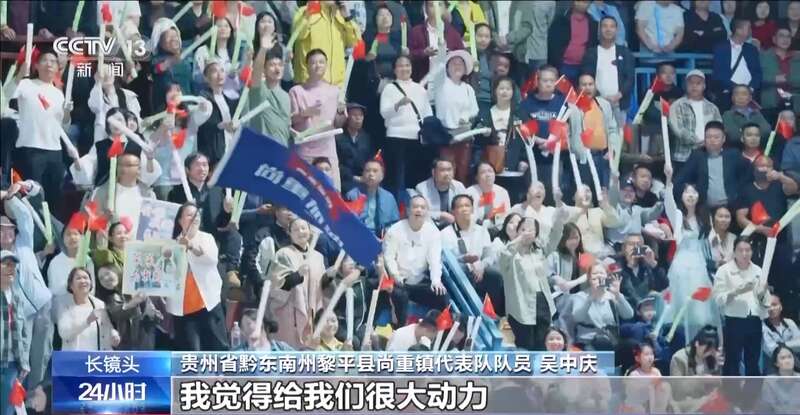 贵州省黔东南州黎平县尚重镇代表队队员 吴中庆:他们大老远过来给我们加油助威,我觉得给我们很大动力。我打“村BA”已经打了三年多了,我在这里也收获了更多的友谊、更多的球技、更多的观众欢呼声。