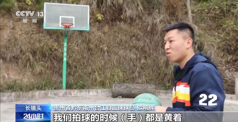 贵州省黔东南州台江县篮球球员 欧明辉:我们以前都是那种黄泥巴,拍球的时候手都是黄着,我们一直保持着我们对篮球热爱的心。