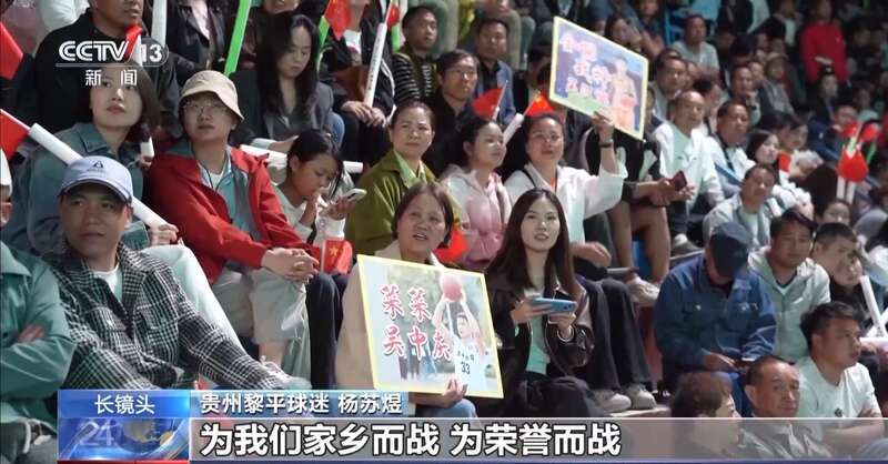 贵州黎平球迷 杨苏煜:从贵州黎平尚重来,我们的球队到台盘来打球,为我们家乡而战、为荣誉而战,我们为他们现场加油。