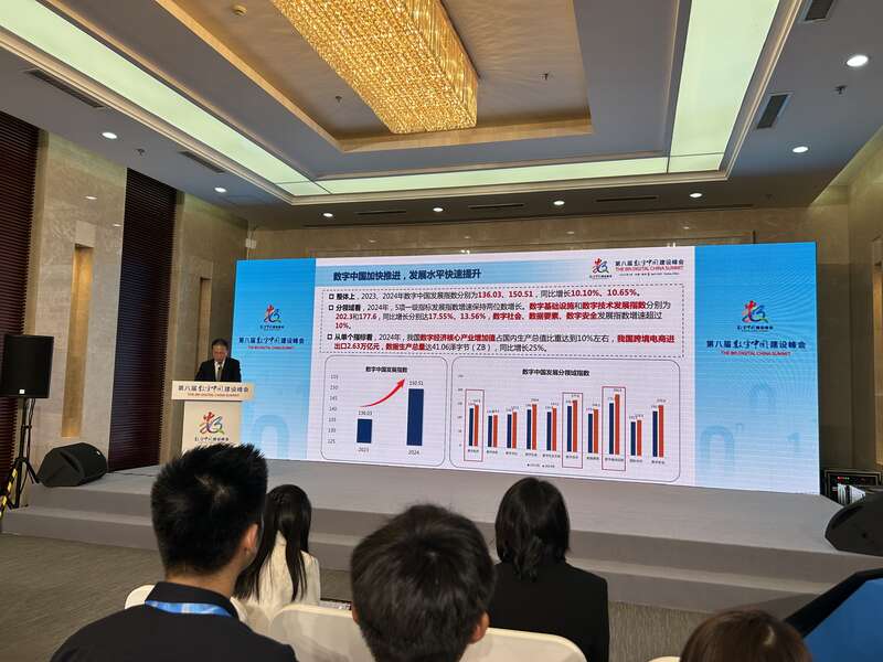 在4月29日开幕的第八届数字中国建设峰会上,国家数据发展研究院院长胡坚波发布“数字中国发展指标体系”和数字中国发展指数测算情况。中青报·中青网记者 贾骥业/摄