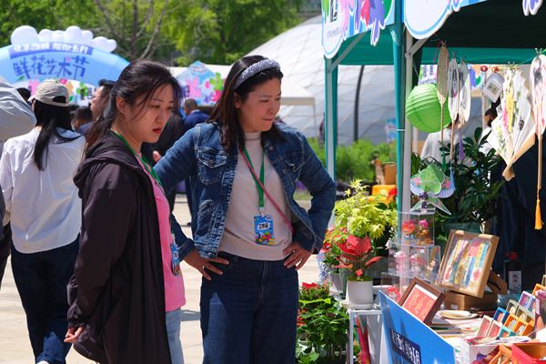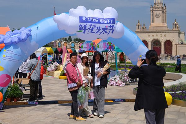 2025年4月29日,市民在北京市西城区西外休闲文化广场购买鲜花。当日,北京西城缤纷五月鲜花艺术节开幕,艺术节集合了近50家鲜花、文创、餐饮类优质品牌,从选购鲜花多肉到与专业花艺师现场交流花艺养护知识,丰富多彩的活动让市民游客都能找到属于自己的乐趣。