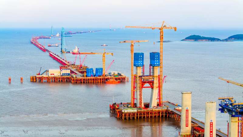 世界最长高速跨海铁路大桥——杭州湾跨海铁路大桥施工现场。黄文波/摄