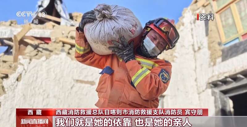西藏消防救援总队日喀则市消防救援支队消防员 宾守朋:令我印象最深刻的是,看见一位老奶奶在倒塌的房屋前徘徊。经过询问,我们得知这位老奶奶是一位无儿无女的孤寡老人,积累下的青稞、粮食还在倒塌的房屋里。当我们帮老奶奶从废墟里一次又一次搬运青稞面粉出来时,老奶奶不停地叮嘱我们小心。那一刻,我们就是她的依靠,也是她的亲人。