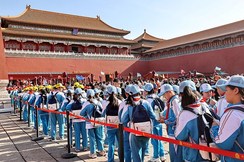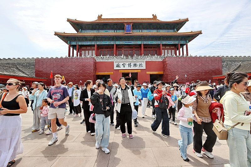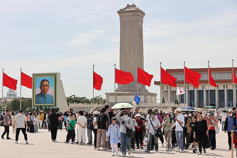 2025年5月4日,北京,“五一”假期,天安门广场、故宫博物院依旧人山人海,游客参观热情不减。
