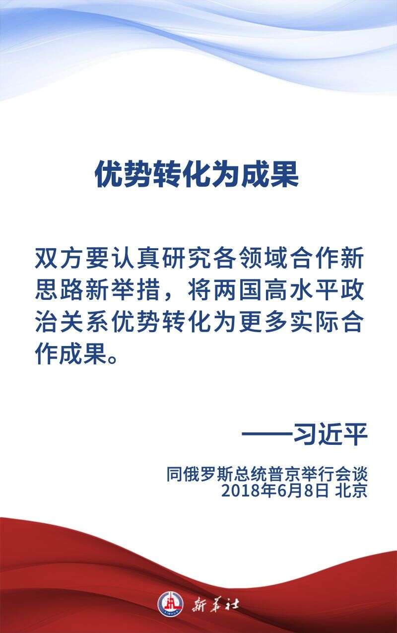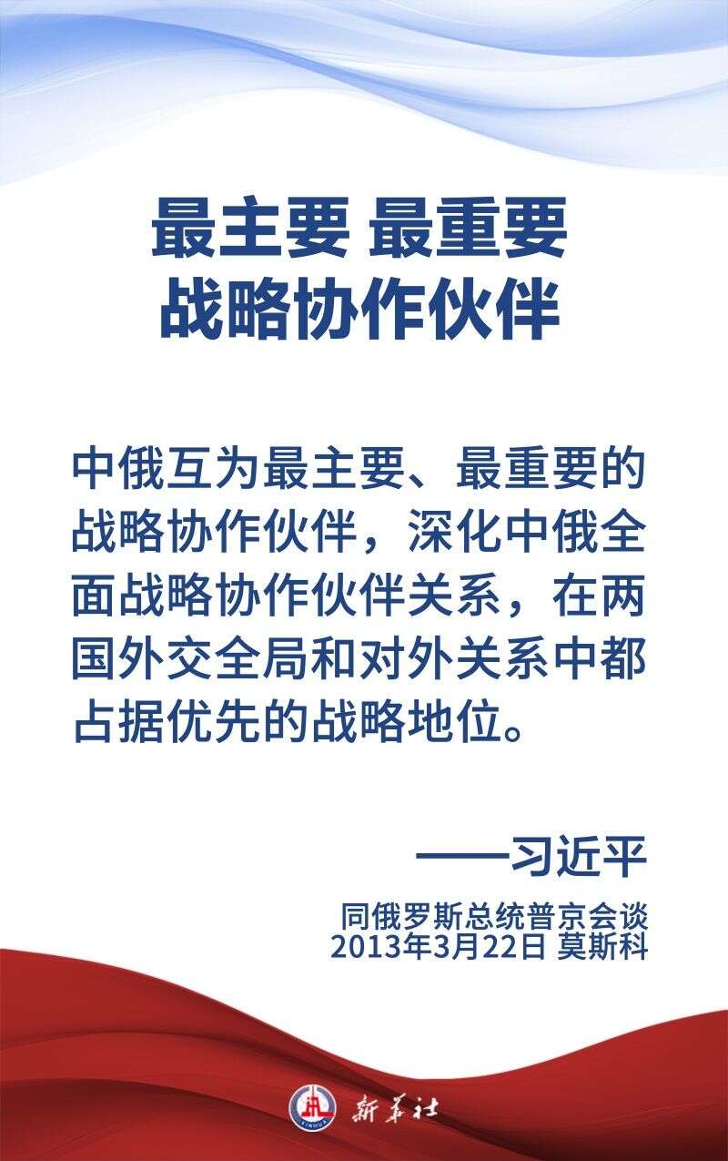 中俄关系历经风雨,历久弥坚,树立了大国、邻国永久睦邻友好、全面战略协作、互利合作共赢的典范。习近平主席和普京总统保持密切交往,为新时代中俄关系作出顶层设计,提供战略引领。在国事访问等重要场合,习近平主席这样论述中俄关系——