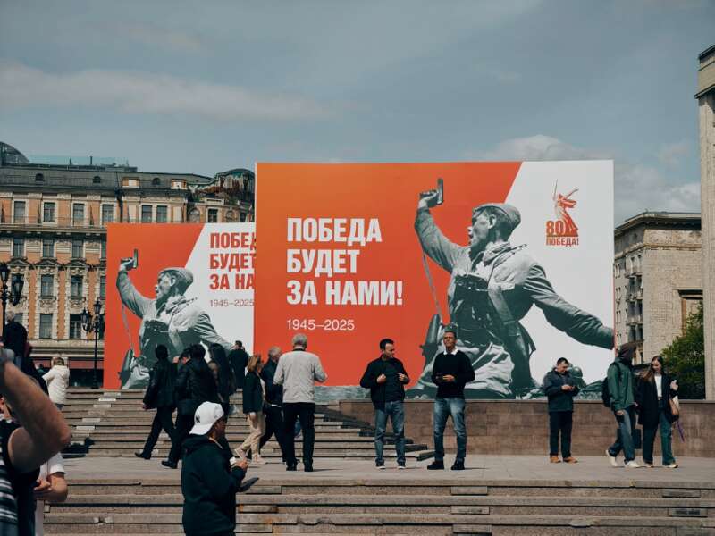 Moscow dressed up to celebrate the 80th anniversary of the Soviet Union's victory in the Great Patriotic War. To welcome the arrival of Victory Day, the city hosts concerts and installations, including Red Square's "Victory Belongs to Us" posters.(Photo by Zhao Qi/China Youth Daily)