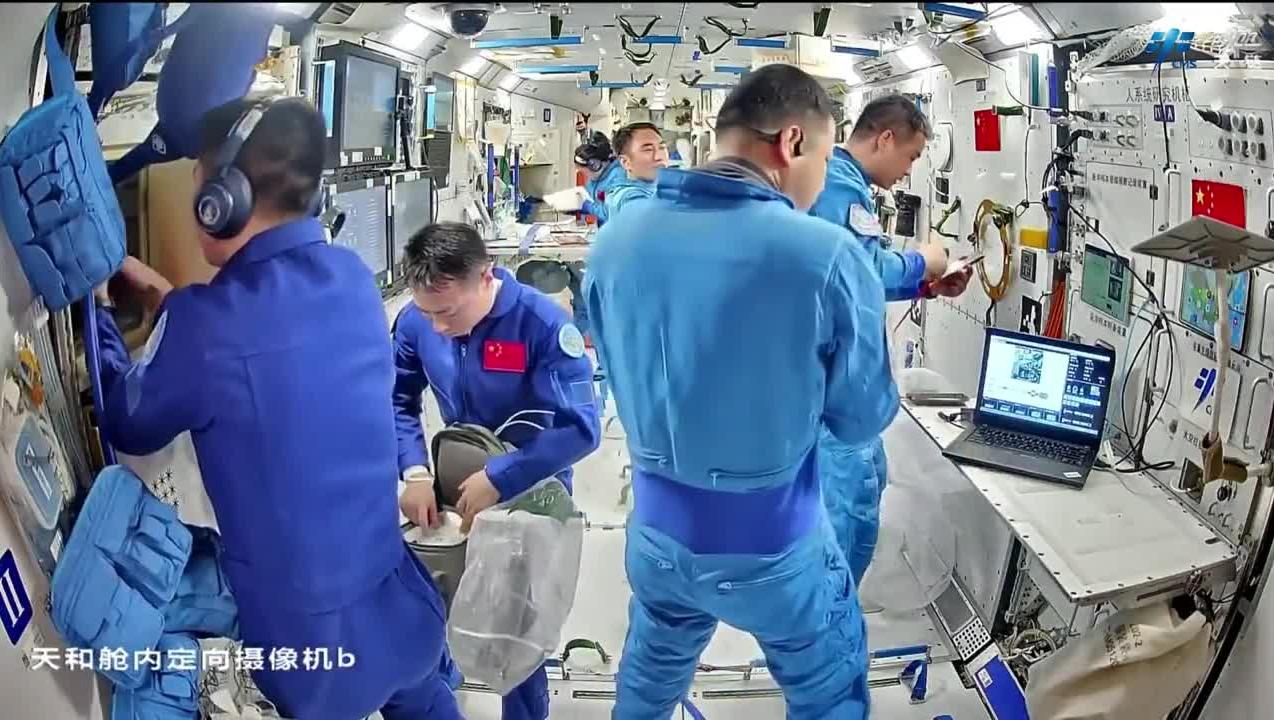 新“太空出差三人组”vlog上新!实验训练健身忙忙碌碌