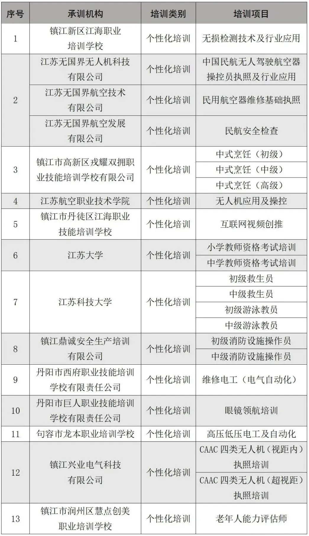 开办12个专业培训班