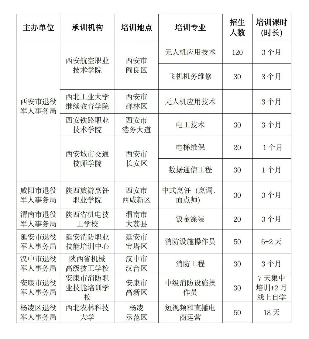 (西安航空职业技术学院无人机应用技术、飞机机务维修,西安工业大学继续教育学院无人机应用技术,西安城市交通技师学院数据通信工程)