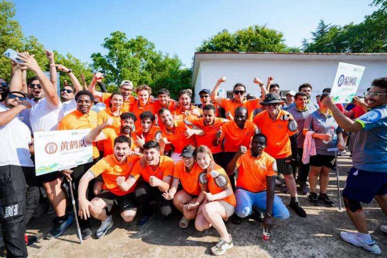 比赛结束后,队员们相拥欢呼,庆祝这场凝聚国际合作的龙舟盛会。黄鹤队队员、埃及留学生颜渊激动的说:“开始比赛后,脑子里什么都没想,一门心思就冲着终点去,我衣服被打湿都没有注意到……我们队动作很协调,太棒了!”