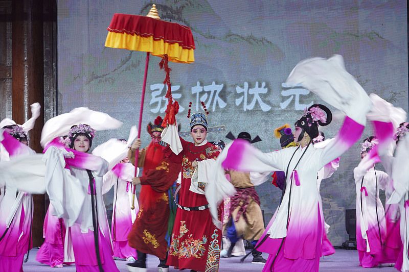 2025年6月13日,浙江温州鹿城九山书会,年轻戏曲演员表演戏曲串烧《千年戏韵》。