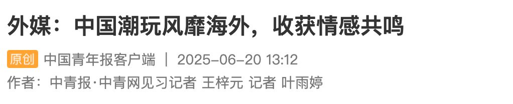 美国《时代》周刊指出,过去“中国制造”常与廉价代工画上等号,而如今以泡泡玛特为代表的中国新生代潮流品牌正通过讲述本土IP故事、输出独特审美来刷新“中国制造”的国际形象。