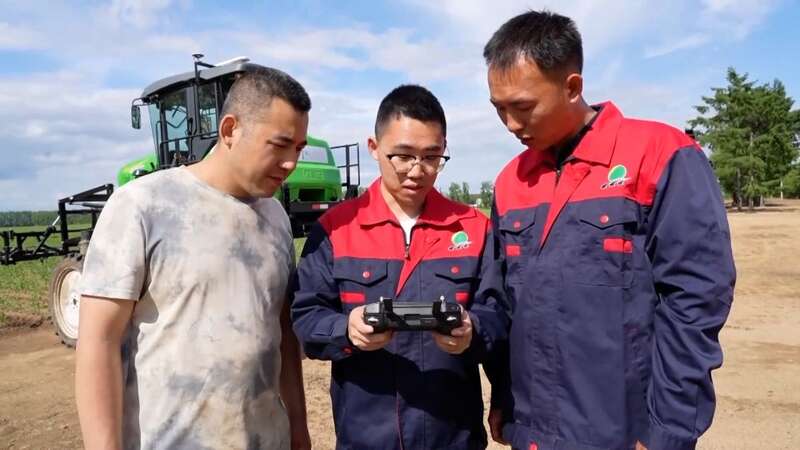 在鹤岗市,北大荒集团共青农场有限公司的农业技术人员与种植户利用无人机遥感系统,对耕地进行多光谱遥感扫描。