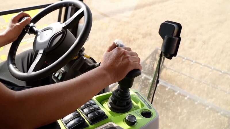 在临汾市襄汾县南贾镇上鲁村的麦田里,一台无人驾驶收割机吸引了不少人的目光。
