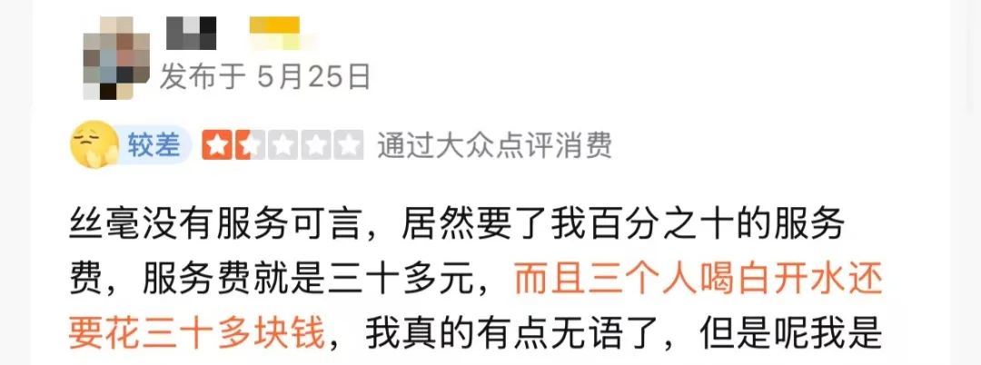 当事人让他们给安排一个最便宜的,得到的回复是58一壶的陈皮水最便宜,“如果我朋友点11的白开水也算茶位,那我为什么不点两个11的白开水就好了?”
