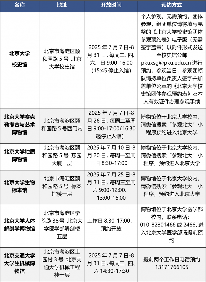 暑期已至,很多家长计划带孩子打卡博物馆。北京青年报记者7月11日获悉,今年北京市教委将继续组织开展高校博物馆 “京彩” 暑期主题活动,北京大学、北京交通大学、北京航空航天大学、北京理工大学、首都医科大学、北京师范大学等22所首都高校面向中小学生和社会公众开放43个校内博物馆。