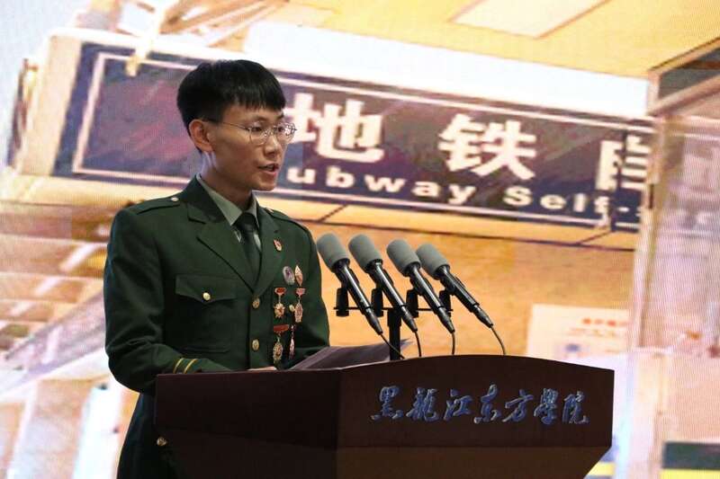 马世龙分享自己的军旅生涯。黑龙江东方学院供图