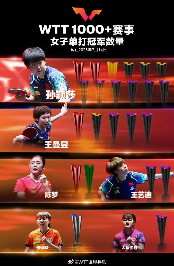孙颖莎11250分世排第一!断崖式领跑冠军榜