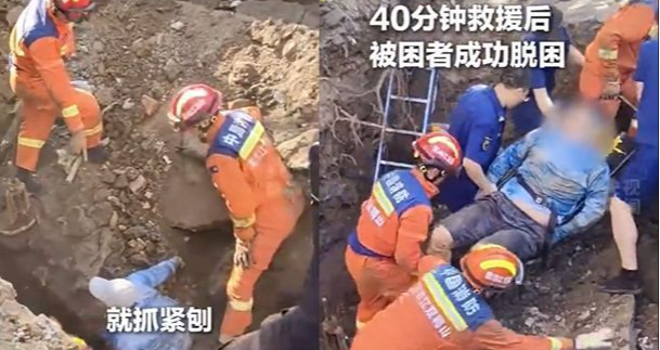 工人施工遭遇塌方半身被埋,二次垮塌的瞬间,消防员用自己的身体作盾护住被困者。致敬!