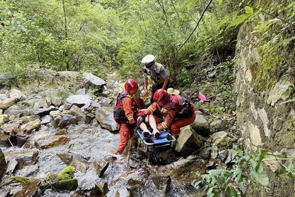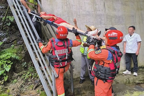 2025年7月21日12时许,湖北省神农架林区木鱼镇香溪源景区内发生惊险一幕:一名 58 岁女子为图方便抄近道,不慎从 8 米多高的山坡坠落,情况危急。接到报警后,神农架林区木鱼消防救援站立即赶赴现场救援。消防救援人员抵达现场后发现,事发山坡植被茂密,坡度陡峭,坠崖女子躺在坡底一处乱石滩中,因疼痛不断呻吟,无法动弹。现场指挥员迅速部署救援方案:两名经验丰富的消防救援人员携带绳索、担架等工具,通过爬梯来到女子身旁,随即检查其身体状况,并简单固定受伤部位,用担架将女子缓慢转移。由于爬梯坡度过大,给转运伤员造成一定难度,消防救援人员随后利用绳索,在上方队友的牵引协助下,成功将受伤女子转移至坡顶安全区域,交由医护人员送往医院进一步检查治疗。