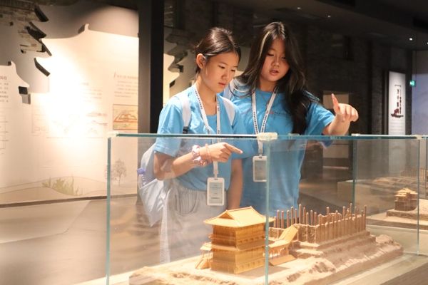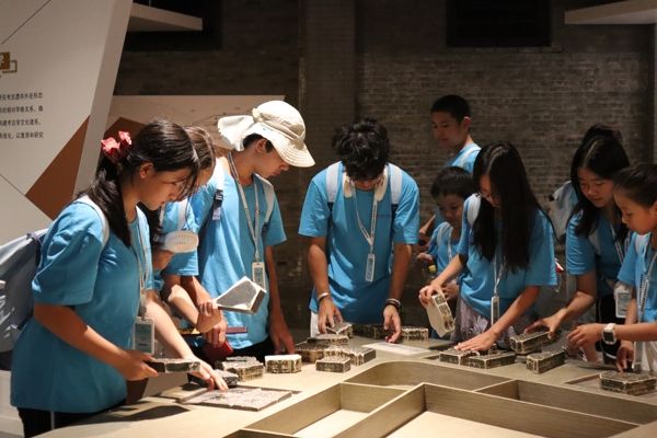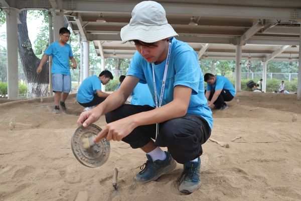 2025年7月24日,参加第八届全球华语朗诵大赛陕西集结营的华裔青少年来到陕西西安大明宫国家遗址公园,学习考古知识,体验模拟考古。 中新社记者 李一璠 摄
