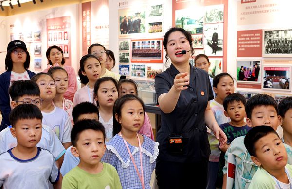 2025年7月24日,山东枣庄市中区人民法院,学生在法官指导下学习使用法槌。暑假期间,山东省枣庄市市中区人民法院开展“法院开放日”活动,学生们在家长的陪同下走进法院,通过模拟法庭、法官说法等,学习法律常识,接受法治教育,“零距离”感受法律的神圣和庄严,丰富暑假生活。