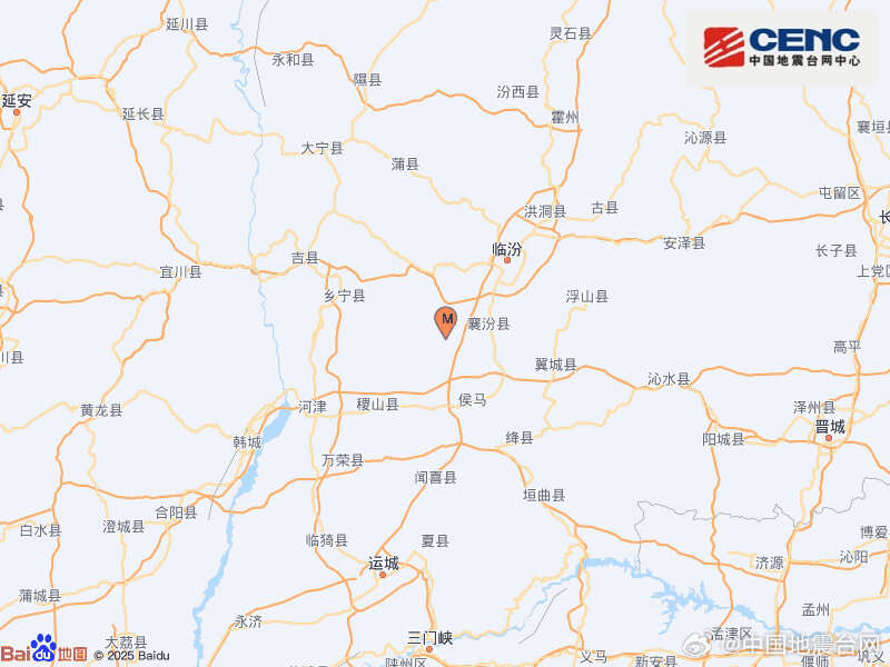 中国地震台网正式测定:7月25日10时13分在山西临汾市襄汾县(北纬35.85度,东经111.27度)发生4.2级地震,震源深度19千米。