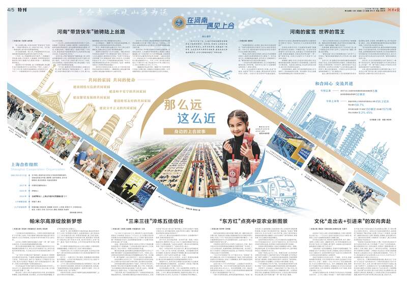 7月23日至27日,上海合作组织媒体智库峰会在河南郑州举行。近年来,河南与上合组织成员国交流不断深入、合作不断深化,本报通过一组经贸、文化交往参与者的生动故事,展现友谊之桥越来越坚实、合作之路越来越宽广的新画卷。