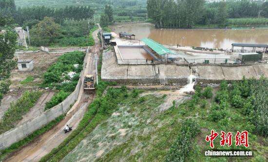 航拍河北省保定市易县仁义庄村道路抢修现场。(无人机照片)