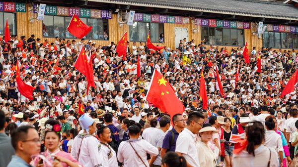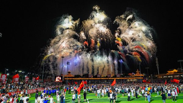 2025年7月26日,贵州省黔东南苗族侗族自治州榕江县城北新区“村超”足球场,人们观赏烟花秀。 历经特大洪水灾害后,贵州榕江“村超”足球赛于7月26日晚正式重启。以“感恩重启·贵州超力量”为主题的“超级星期六”活动在修复后的“村超”球场举行,宣告赛事回归。随着赛事重启,“村超”系列足球比赛及当地民俗展演活动也已同步恢复。此次重启展现了榕江人民重建家园的坚韧和“贵州力量”。 据悉,6月下旬,榕江县遭遇持续强降雨引发特大洪水,“村超”球场严重损毁。经约一个月全力重建,球场完成修复。