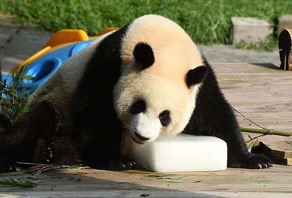 重庆高温天气持续 大熊猫躺冰砖享受清凉