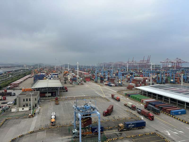 The Meishan Port area of the Ningbo-Zhoushan Port is pioneering global port innovation. By seamlessly operating both manned and unmanned trucks, it enhances efficiency and sustainability. This smart port showcases the vivid picture of Chinese-style modernization in the field of port construction. (Photo by Yuan Ye/China Youth Daily)
