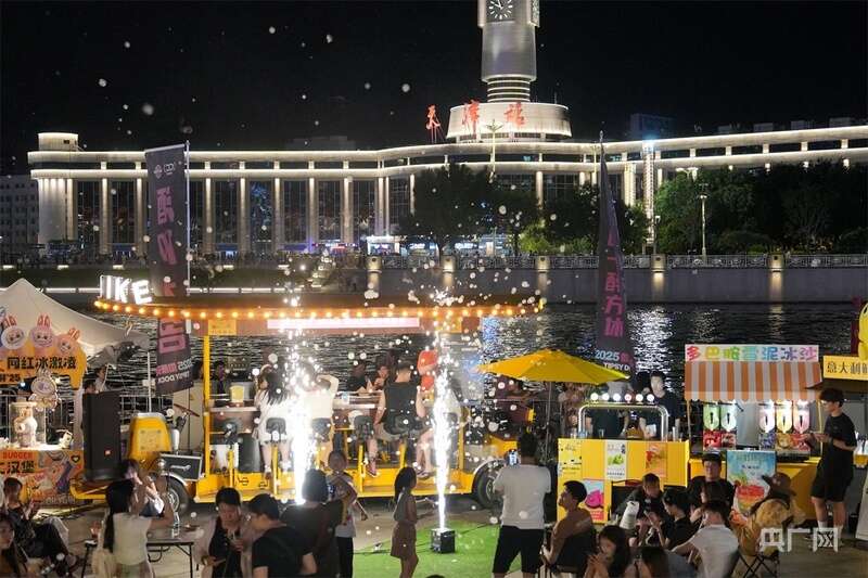 央广网天津8月8日消息(记者褚夫晴)轻风吹拂的海河波光粼粼,坐落于“黄金弯道”的津湾广场游人如织。当塔楼迎着夕阳的余晖,法式建筑群落的轮廓掠过河面,与对岸天津站的钟楼、解放桥的钢铁桁架隔空对话时,一幅镌刻着津派文化基因的画卷跃然眼前。