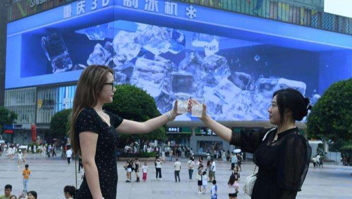 重庆街头现巨型“3D制冰机”为市民“降温”
