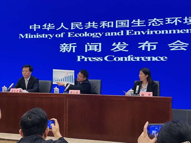 8月26日,生态环境部举办新闻发布会,蒋火华介绍全国水生态环境情况。中青报·中青网记者 张艺/摄