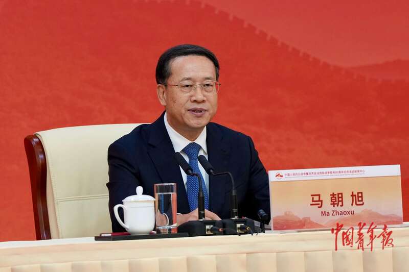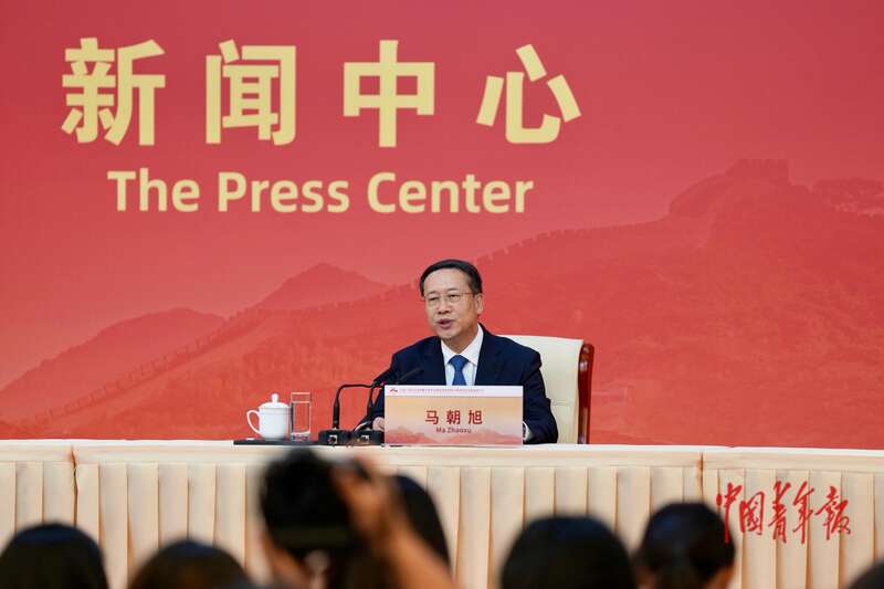 8月29日上午,中国人民抗日战争暨世界反法西斯战争胜利80周年纪念活动新闻中心举办第二场记者招待会,外交部副部长马朝旭介绍坚持和平发展、推动构建人类命运共同体有关情况,并回答记者提问。中青报·中青网记者 李隽辉/摄