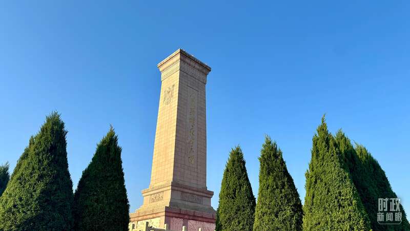 总书记等党和国家领导人登上纪念碑基座,在花篮前驻足凝视。总书记迈步上前,仔细整理花篮缎带,随后缓步绕行,瞻仰人民英雄纪念碑。
