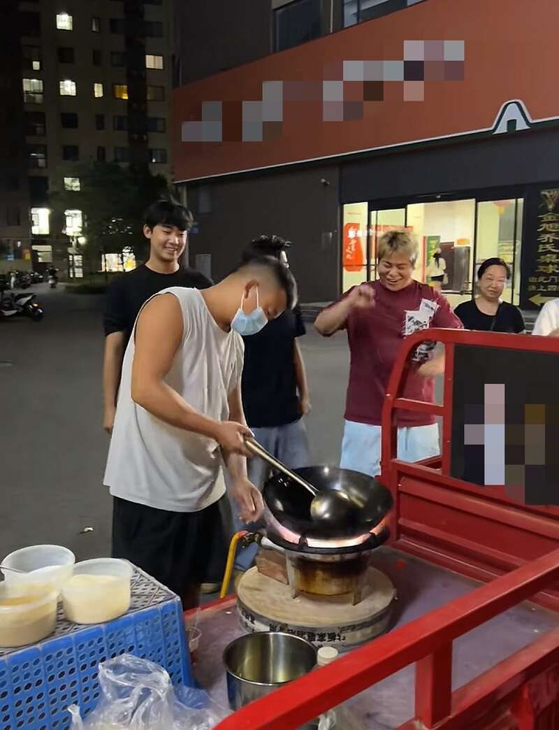 “尧仔炒粉”老板上门为车祸受伤的顾客现场炒粉。社交媒体截图