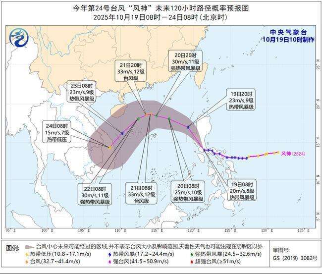 中央气象台10月19日10时继续发布台风蓝色预警: