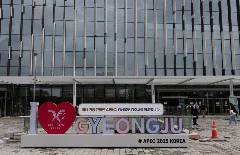 韩国庆州,枫林正从深绿一层层转向金黄与橙红,与古寺檐角和灰白石塔相互映衬。随处可见的亚太经合组织第三十二次领导人非正式会议标识,如同翩翩起舞的蝴蝶,迎接各方贵宾的到来。