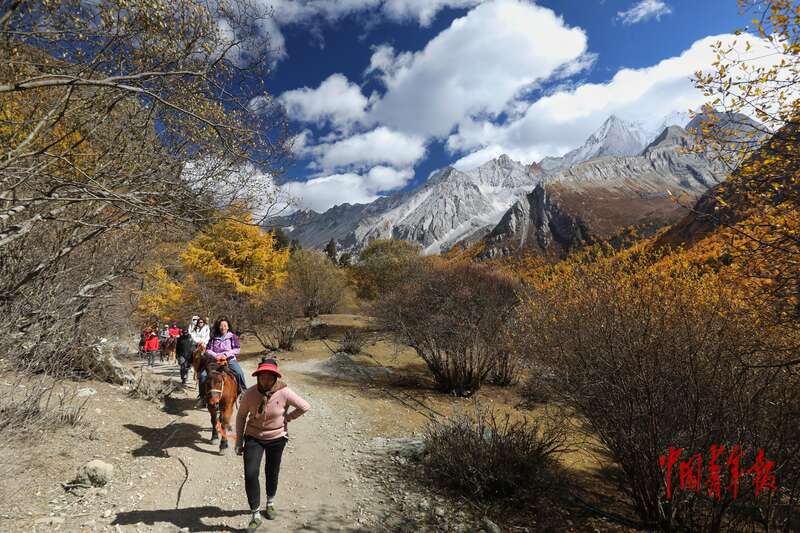 10月29日,四川省甘孜藏族自治州,稻城亚丁风景区,游客体验骑着骡马上山。中青报·中青网记者 李建泉/摄