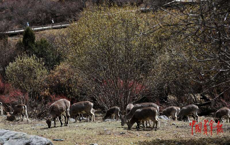 10月29日,四川省甘孜藏族自治州,稻城亚丁风景区,走在景区观光路上,随处可以见到野生的岩羊。中青报·中青网记者 李建泉/摄